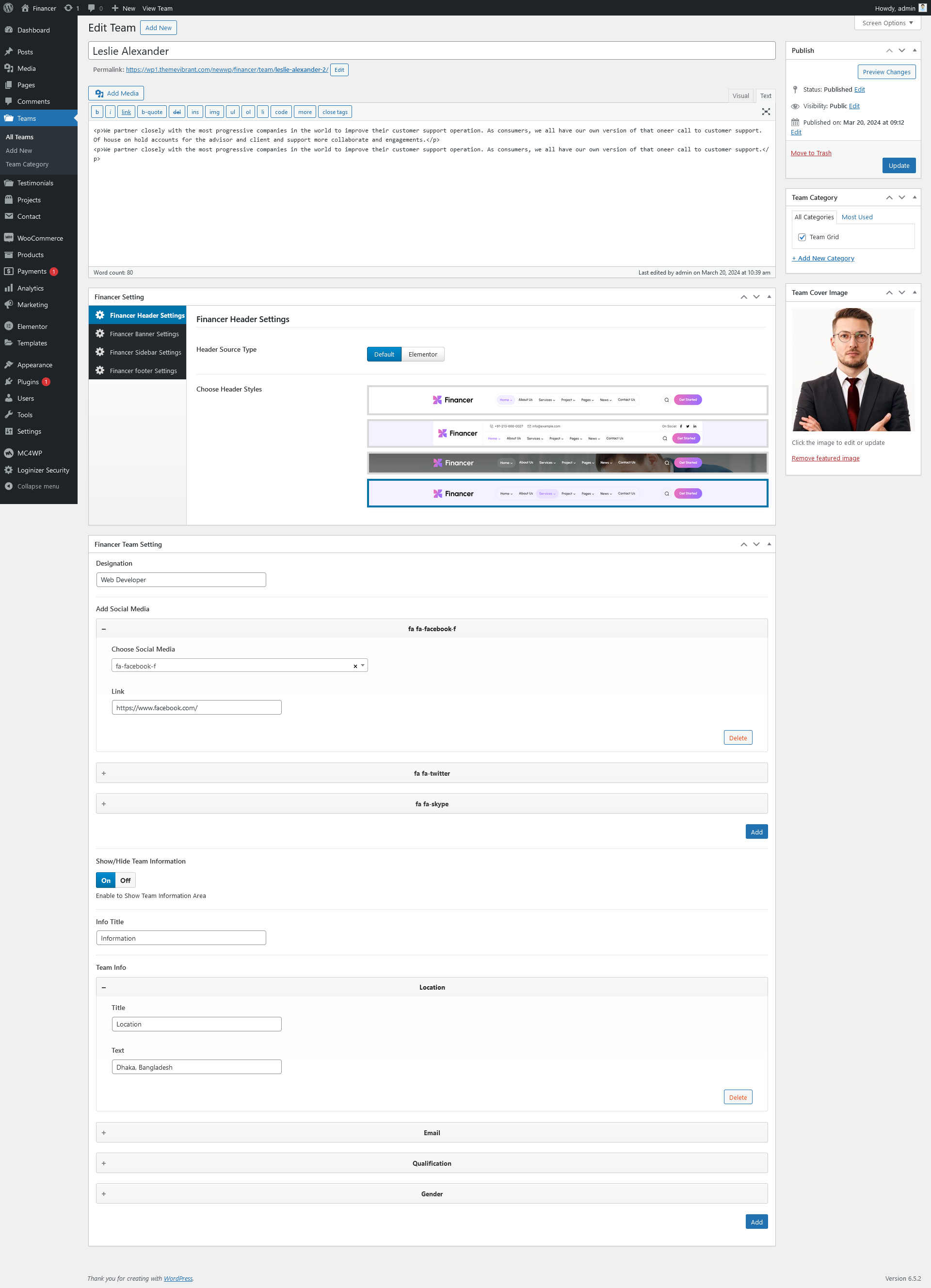 We listed below all Financer options. You can learn how we used Financer WordPress theme options in below;