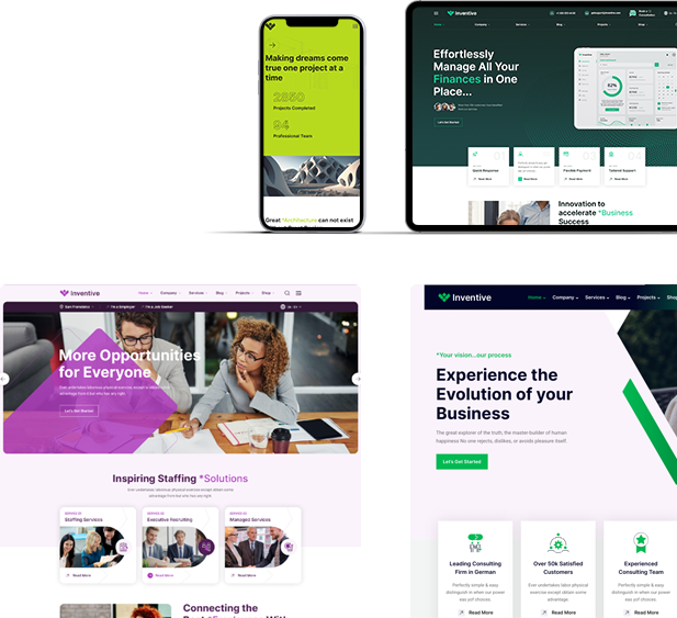 Ineventive WordPress Theme is ideal responsive version for any device without a single compromise, will always looks cool and great on any mobile device or browsers. Its easily adapt your content for mobile, tablet and so on.
